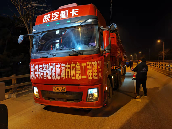 3月13日早晨七點(diǎn),正在酒店封閉隔離的青島銷售分公司業(yè)務(wù)經(jīng)理馬傑、魏志偉接到客戶威海市水務(wù)集團(tuán)的緊急通知:“威海市正在建設(shè)防疫設(shè)施的配套供水管線,急需1000m DN300球墨鑄鐵管,請貴公司以最快速度發(fā)貨運(yùn)至工地?!?/span>